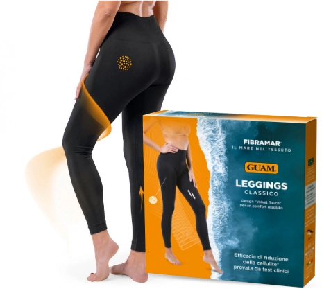 Anticelulitidní legíny Guam jsou nositelné kosmetické ošetření, které redukuje celulitidu, zpevňuje a tvaruje nohy a hýždě. Tyto legíny jsou jediné legíny s obsahem kapslí s mořskými řasami přímo v tkanině, takže se aktivní složky pomalu uvolňují do pokožky. Tato tkanina má také schopnost absorbovat teplo pokožky a uvolňovat ho ve formě infračervených paprsků (FIR). Díky této technologii s názvem Fibramar legíny účinně zlepšují mikrocirkulaci pokožky, díky čemuž je pokožka hladší, tónovaná a pružná. Tato pokroková technologie, která v sobě spojuje sílu mořských řas a bioaktivních minerálů FIR, eliminuje celulitidu a tvaruje postavu.