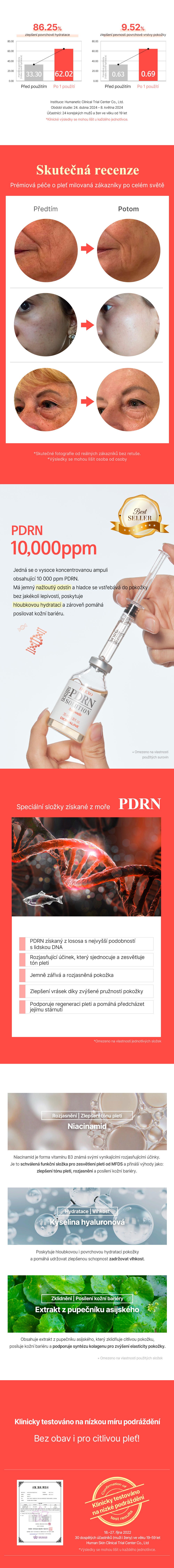 Diglycerin, Sodium DNA (10,000 ppm), Methyl Gluceth-20, Centella Asiatica Extract, Panthenol, Xylitylglucoside, Polyglyceryl-10 Laurate, Betaine, Anhydroxylytol, Tara Fruit Extract, Hydroxyacetophenone, Polyacrylate Crosspolymer-6, Caprylic/Capric Triglyceride, Xylitol, Polyglyceryl-3, Cotton Extract, Sodium Hyaluronate, Hydrogenated Lecithin, Acorus Calamus Root Extract, Adipic Acid, Perilla Leaf Extract, Adenosine, Glucose, Polyquaternium-51, Scutellaria Baicalensis Root Extract, Polygonum Multiflorum Root Extract, Common Jasmine Oil, Glyceryl Acrylate/Acrylic Acid Copolymer, Phytosteryl/Octyldodecyl Lauroyl Glutamate, Spanish Licorice Root Extract, Green Tea Extract, 3-O-Ethyl Ascorbic Acid, Asiaticoside, Ceramide NP, Bladderwrack Extract, Matricaria Flower Extract, Rosemary Leaf Extract, Prunella Vulgaris Extract, Hydrolyzed Hyaluronic Acid, Dextrin, Ethylhexylglycerin, Sodium Acetylated HyaluronateUpozornění k použití